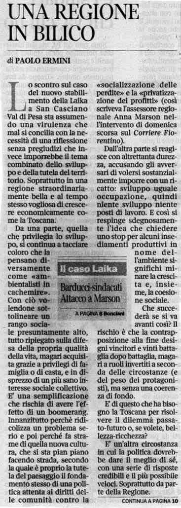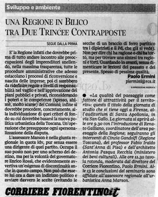 Una Regione in bilico: commento di Paolo Ermini, direttore del Corriere Fiorentino (18.10.2011):